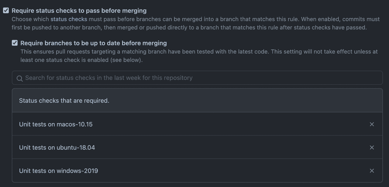 - 해당 옵션으로 Workflow가 성공 했을때만 Merge 가능하게 설정합니다.