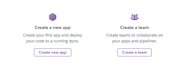 이제 해당 애플리케이션을 배포하기 위해 Heroku로 접속합니다 Heroku 사이트 가입 완료 후 로그인을 하면 위와 같은 메뉴가 나타나게 되는데